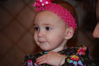 She loves babies! You can't tell but she is waving with her right hand and probably saying "Hi Gabe" which is what she calls every baby.